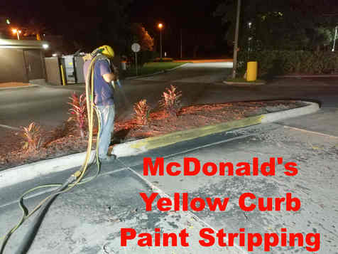 It was a lot less expensive than blasting so Enclave went that route and painted ½ mile of sidewalk a 2nd time. Next time it rained, more guests slipped and fell. Ut oh! They called me up and gave me approval for blasting the sidewalk. But now it had 2 coats of paint on it and not 1. Not knowing what that 2nd coat was like, I went back and did another test blast.